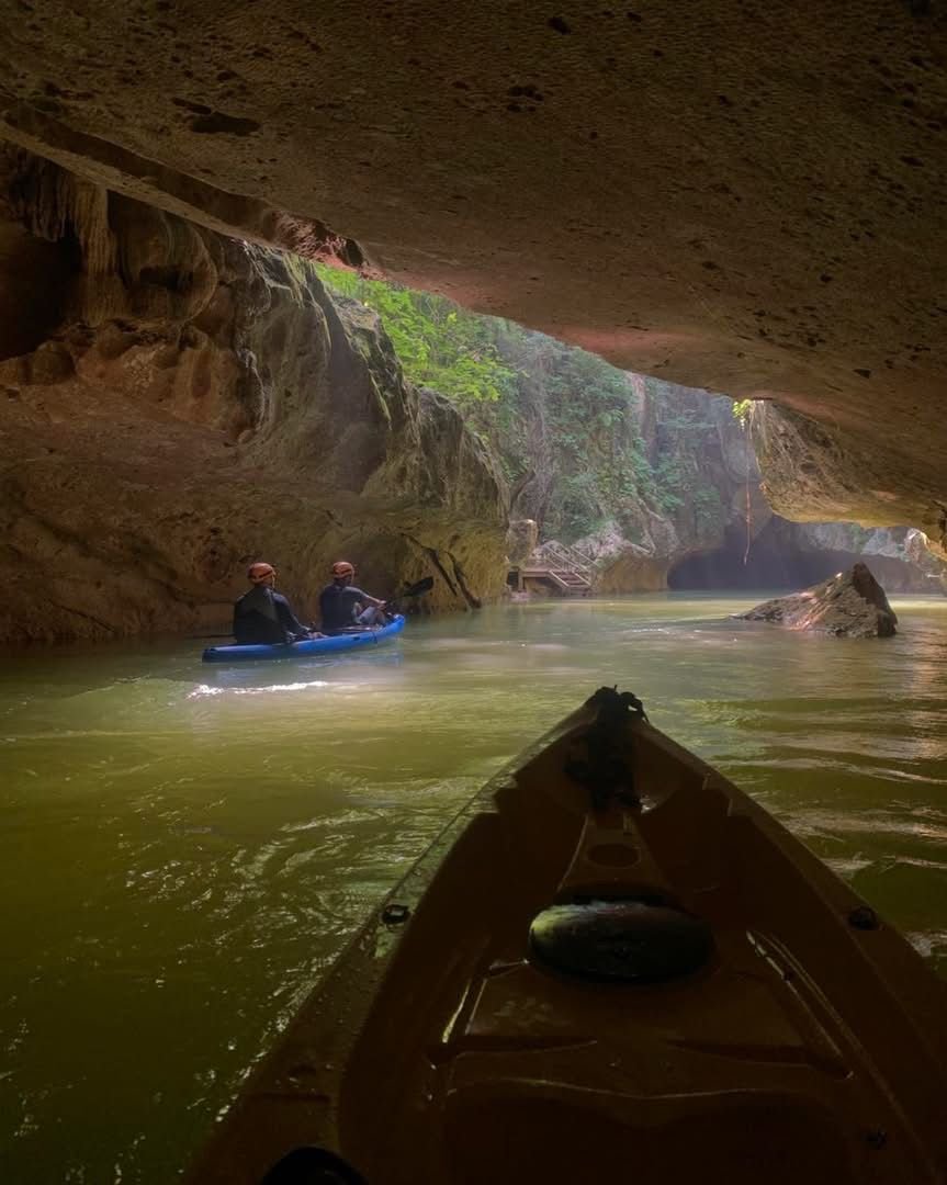 The grand finale of your day awaits. After a short, informative hike through the jungle, where your guide will point out fascinating flora and fauna, you’ll arrive at the entrance to the vast cave system. Here, you’ll be outfitted with your kayak, paddle, and a helmet equipped with a bright headlamp. As you paddle from the sun-drenched jungle into the cool, immense mouth of the cave, you’ll feel like you’re entering another world.